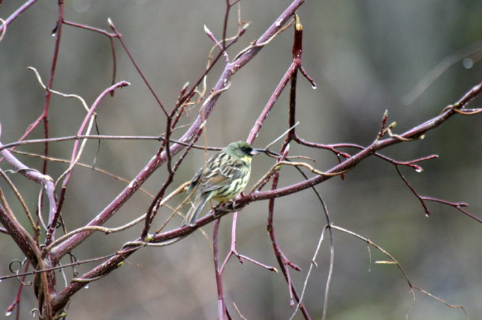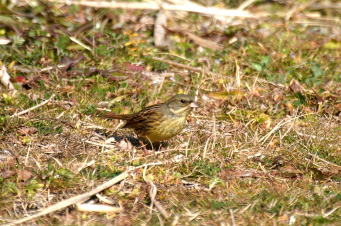 アオジもクロジもホオジロの仲間で、本州以北で繁殖する代表的な高原の鳥ですが、冬季は暖地の平地や丘陵地に移動します。 アオジは繁殖期には明るい林や草原に接した林に棲息し、むき出しの枝でゆっくりしたテンポで囀ります。冬季には一部冬鳥としても渡来し、薄暗い林で草の実などを食べて冬を越し、数も多いことから公園の薄暗いところで見ることが出来ます。 一方クロジは繁殖期には雪の多い地方のブナ林、亜高山の針葉樹の林床にササ類が密生した暗い林を好んで棲息します。越冬期はアオジと同様暖地に移動し、常緑広葉樹林やスギ林などの林床にアオキなどが茂った暗い林で、草の実などを食べて過ごします。 私は福岡勤務時代(平成5,6年)、油山に探鳥によく通いましたが、冬季ネイチャーセンターの餌台にやって来るクロジを窓越しに観察したことを鮮明に覚えています。 |